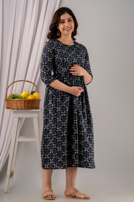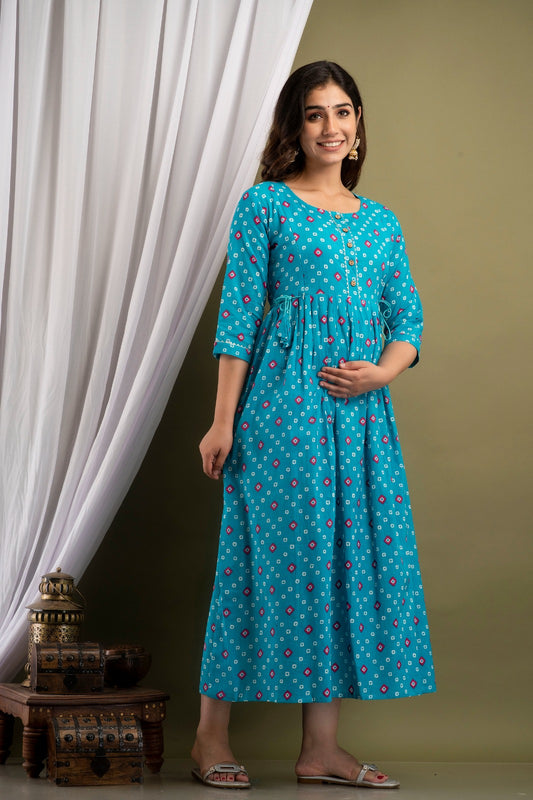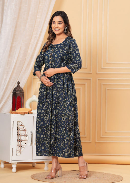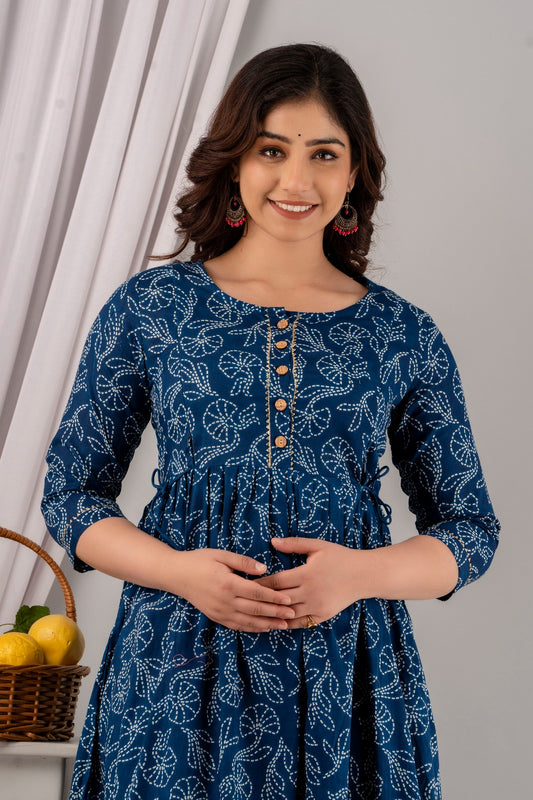 Ziyatrends Modern Maternity Wear | Pure Cotton Pregnancy Kurti for Nursing Moms Baby shower Blue print