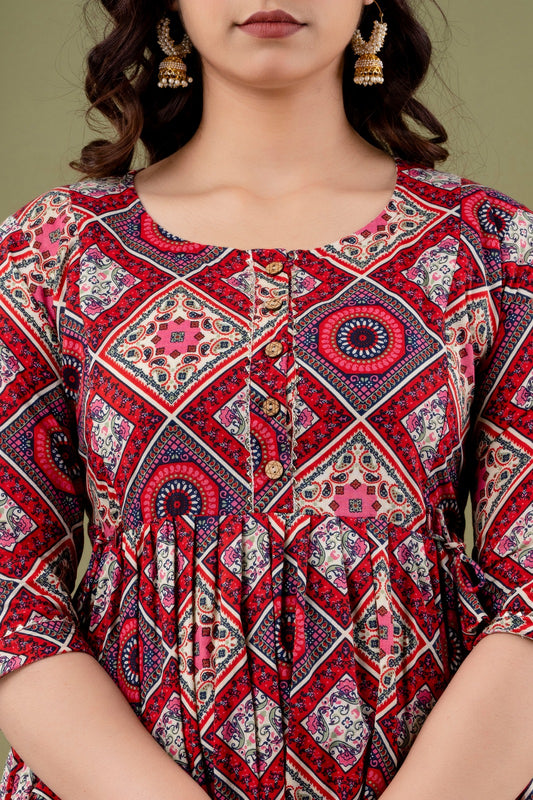 Ziyatrends Pregnancy Kurti with Hidden Zippers for Nursing | Stylish Cotton Dress I Ethnic Print Maroon
