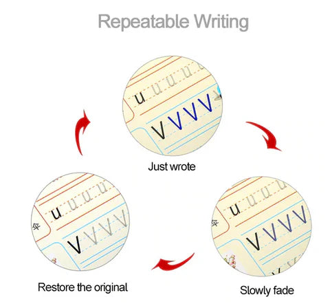 🌟 Magical Reusable Functionality: Watch as the handwriting disappears like magic, allowing for endless practice sessions. Say goodbye to wasting paper and hello to eco-friendly learning!